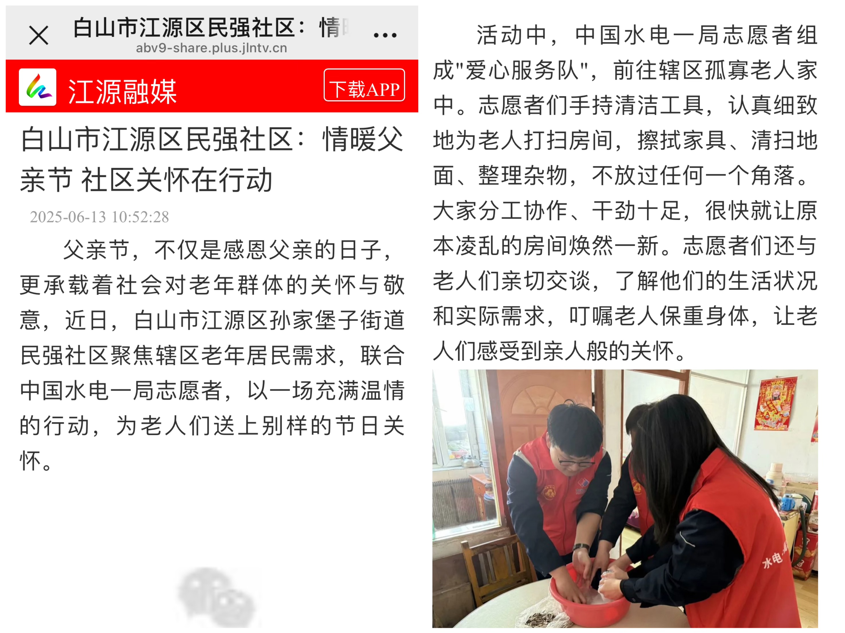父親節(jié),不僅是感恩父親的日子,更承載著社會(huì)對(duì)老年群體的關(guān)懷與敬意,近日,白山市江源區(qū)孫家堡子街道民強(qiáng)社區(qū)聚焦轄區(qū)老年居民需求,聯(lián)合中國(guó)水電一局志愿者,以一場(chǎng)充滿溫情的行動(dòng),為老人們送上別樣的節(jié)日關(guān)懷。 活動(dòng)中,中國(guó)水電一局志愿者組成"愛心服務(wù)隊(duì)",前往轄區(qū)孤寡老人家中。志愿者們手持清潔工具,認(rèn)真細(xì)致地為老人打掃房間,擦拭家具、清掃地面、整理雜物,不放過(guò)任何一個(gè)角落。大家分工協(xié)作、干勁十足,很快就讓原本凌亂的房間煥然一新。志愿者們還與老人們親切交談,了解他們的生活狀況和實(shí)際需求,叮囑老人保重身體,讓老人們感受到親人般的關(guān)懷。 此次活動(dòng)不僅為老人創(chuàng)造了整潔舒適的居住環(huán)境,更傳遞了社區(qū)對(duì)老年群體的關(guān)愛。下一步,民強(qiáng)社區(qū)將持續(xù)開展多樣化的惠民服務(wù),用心用情解決居民實(shí)際需求,不斷提升居民的獲得感和幸福感。 |
